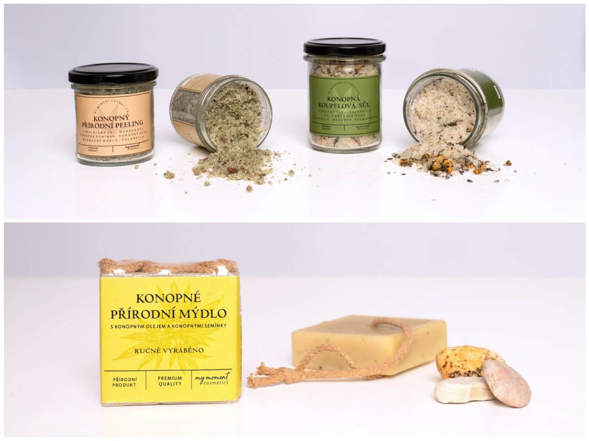 právě nyní uvádíme na trh konopné výrobky v podobě konopného peelingu, konopné léčivé soli a konopného mýdla.