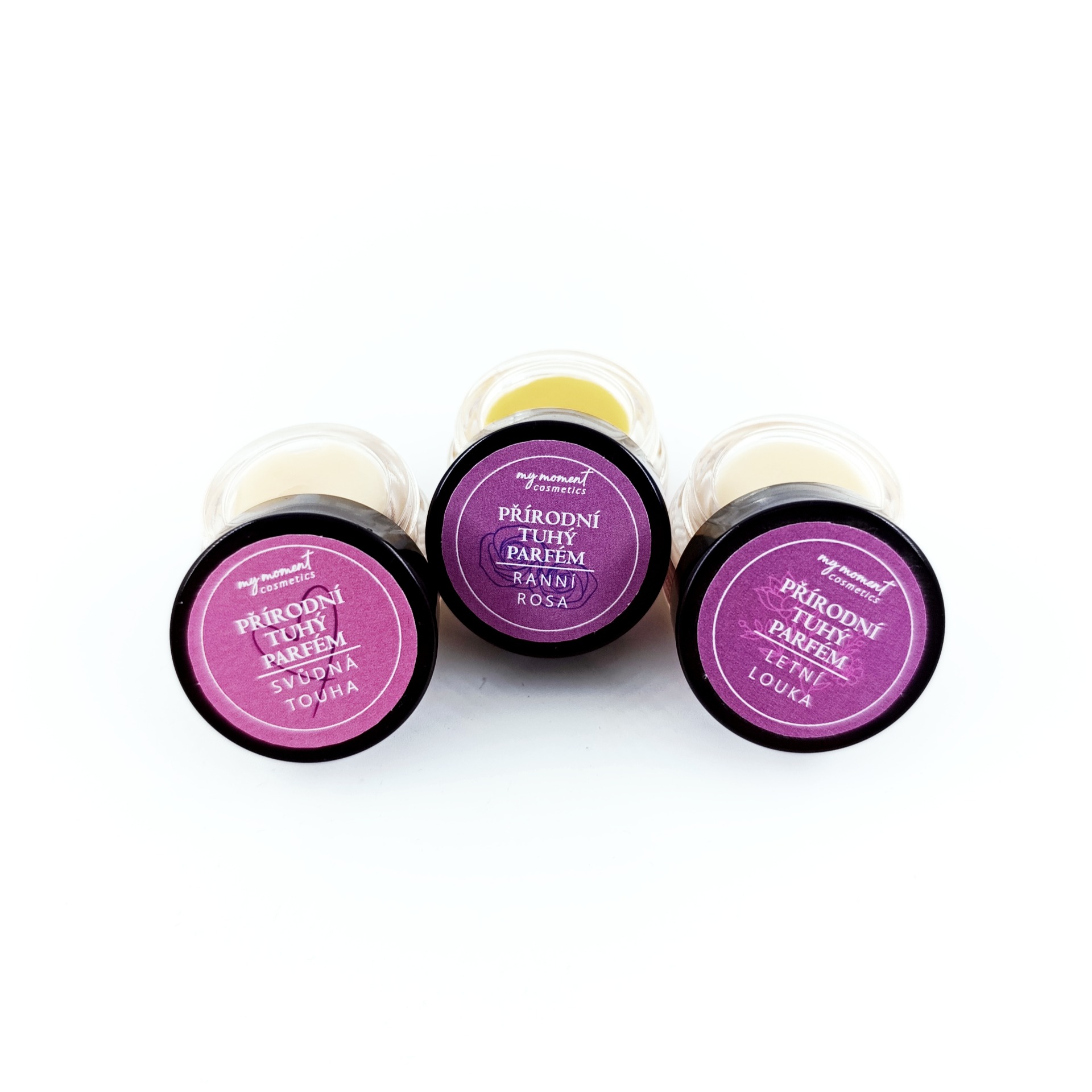 Sada obsahuje tři tuhé parfémy Svůdná touha, Ranní rosa a Letní louka. Každý ve své specifické vůni.