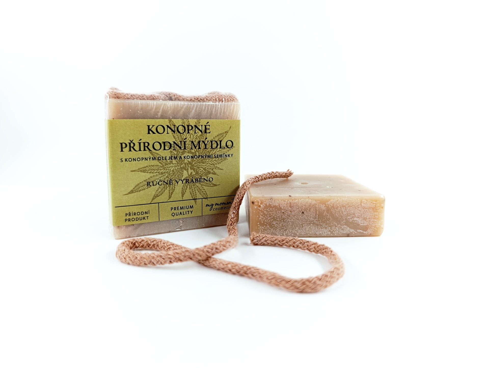 Konopné přírodní mýdlo My Moment Cosmetics je šetrné a vysoce vyživující mýdlo ručně vyráběné s láskou a respektem k přírodě.